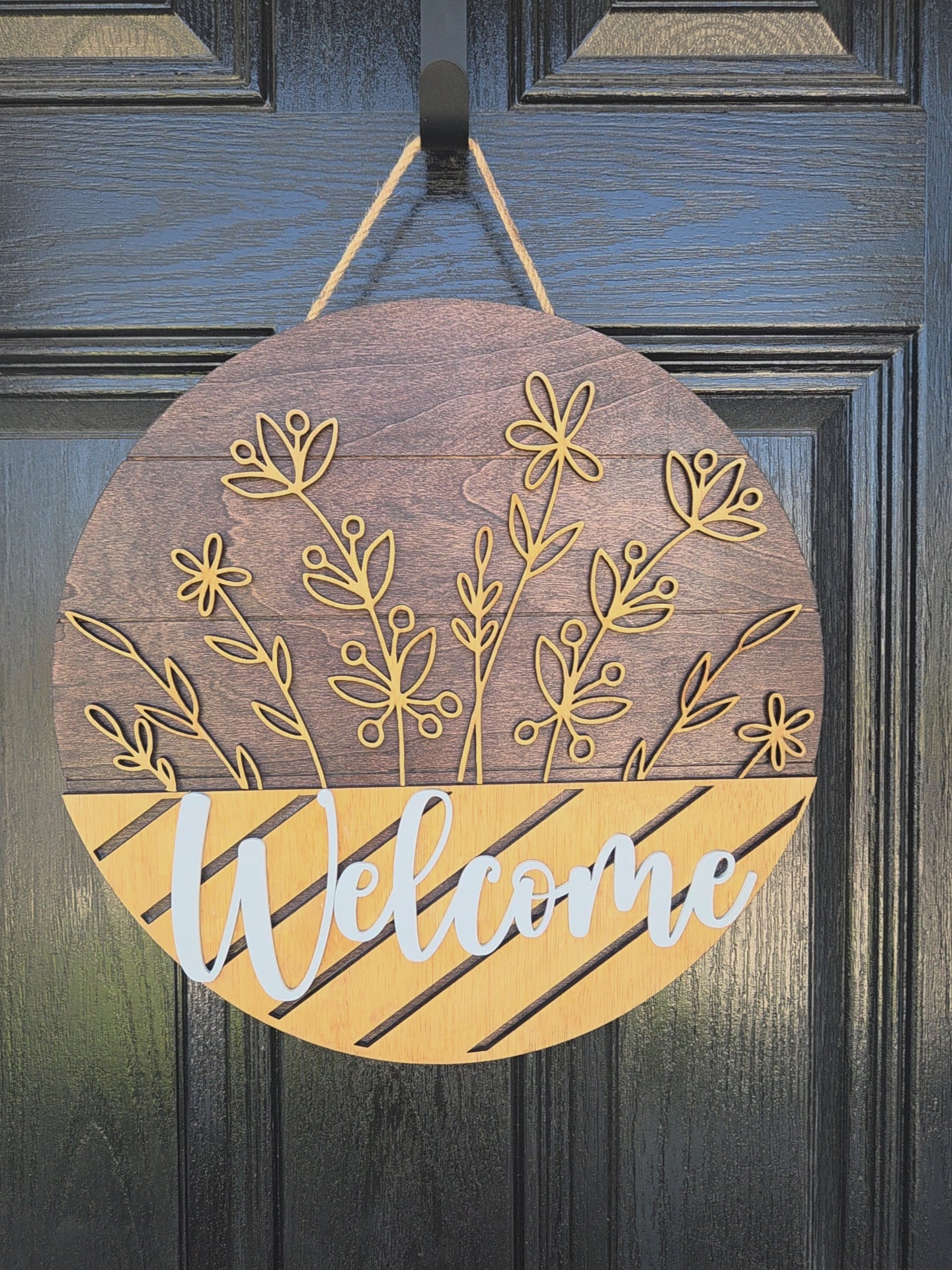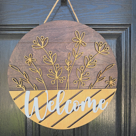 Spruce up your front door with this 15.75in x 15.75in wooden door hanger! Perfect for all seasons!