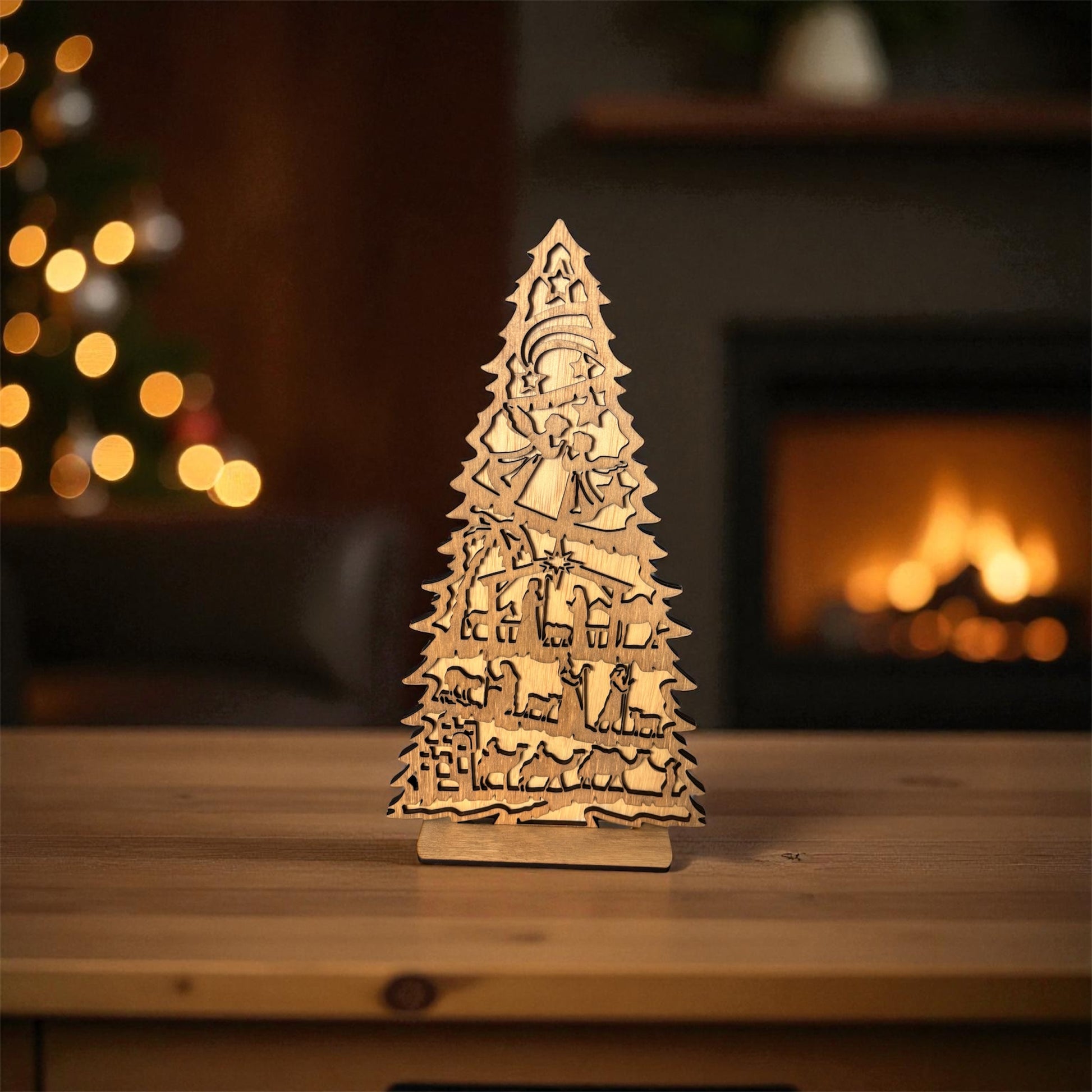 This stands approximately 19 inches tall and is made from 2 layers of wood. Comes with a stand to display