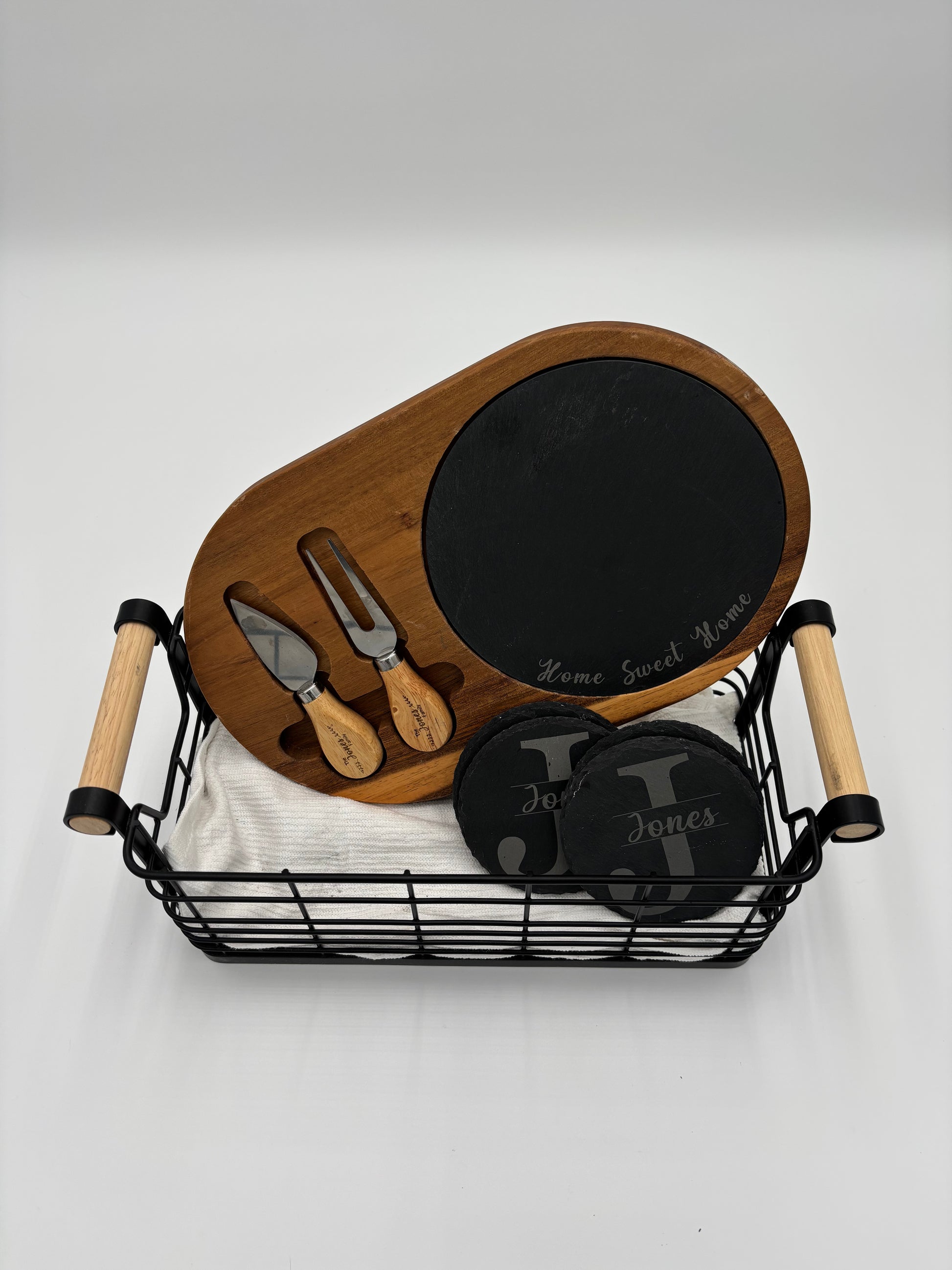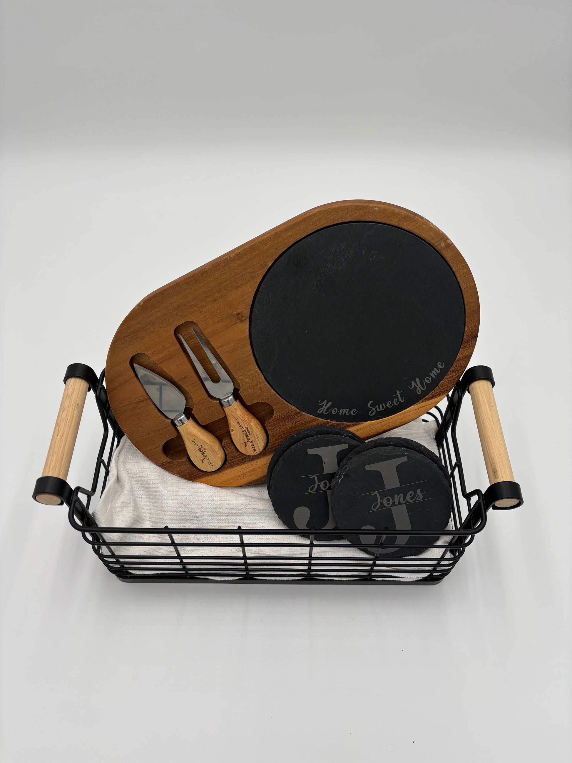 Personalized Charcuterie board set with slate coasters, Engrave Acacia cheese board, Realtor closing gift, New home gift, Laser engraved wedding gift